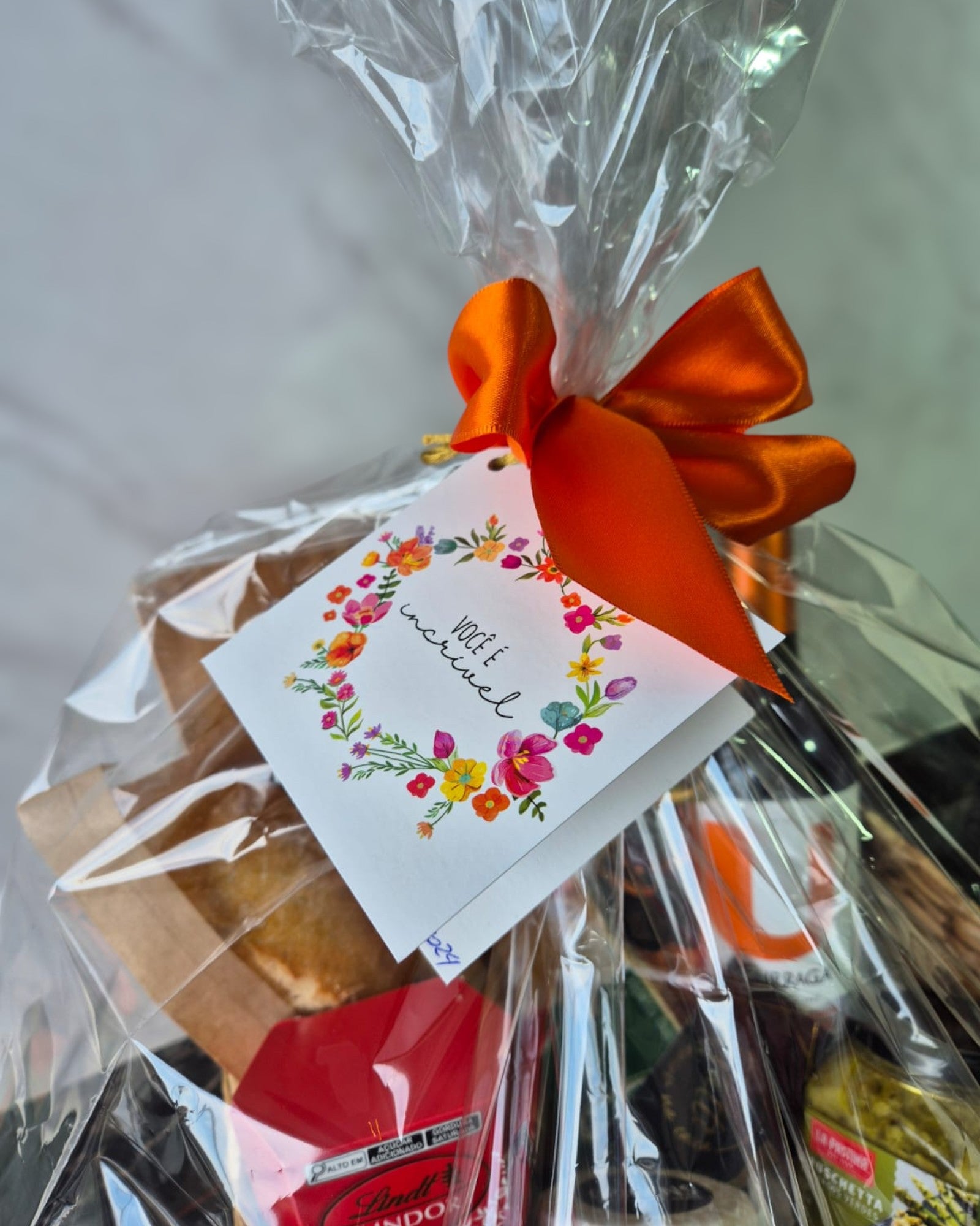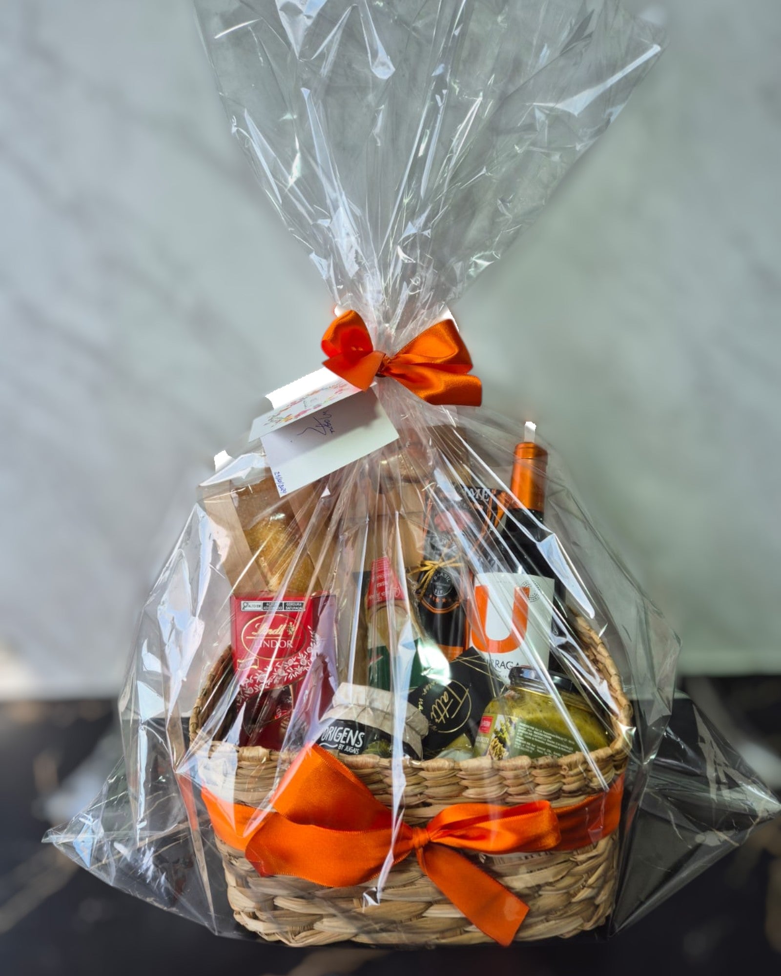 O Cesto Degustação Premium é para pessoas de gosto refinado que apreciam o belo em cada detalhe. Decorado com laço de cetim e fechado com saco transparente para proteção dos itens.