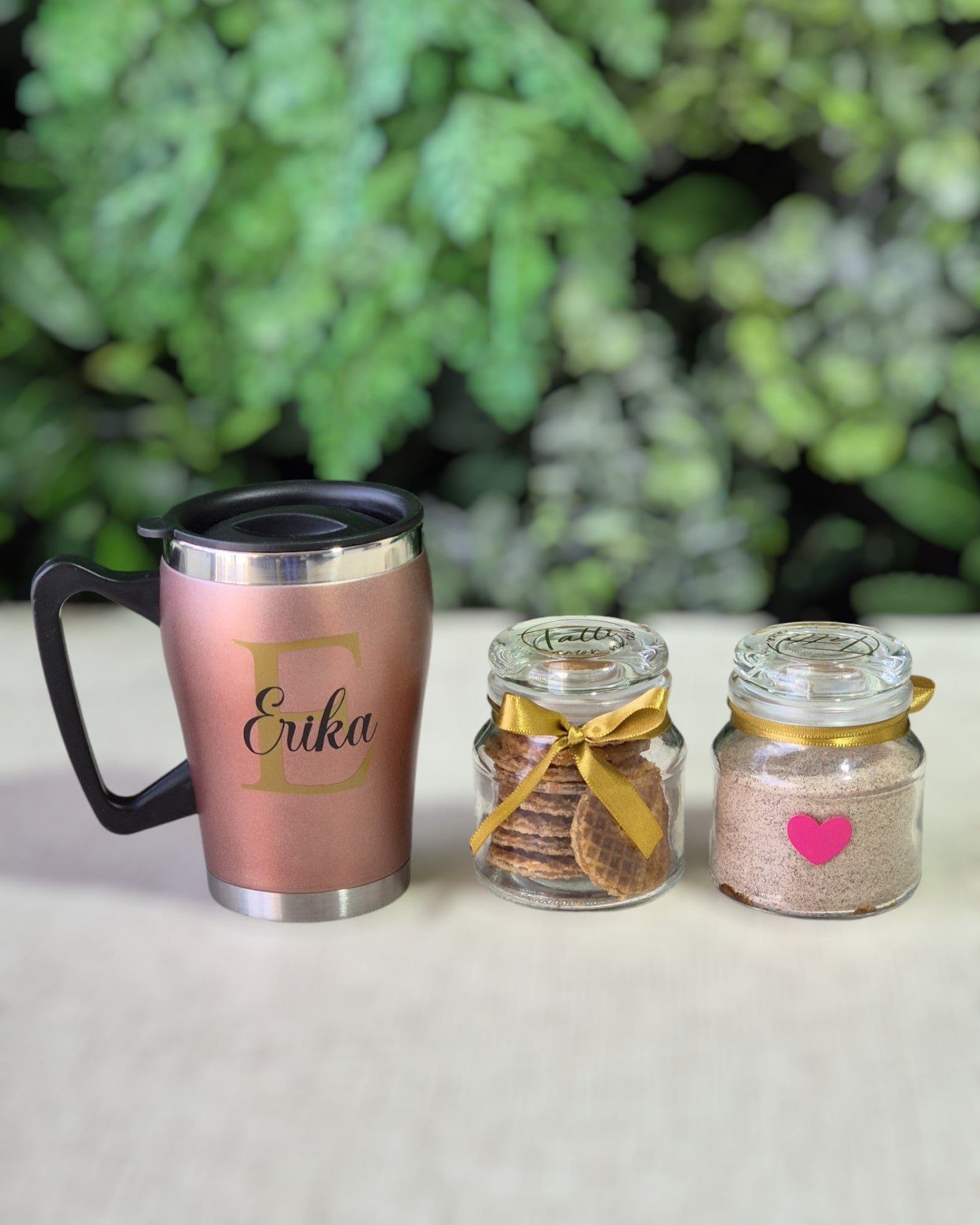 Nossa encantadora caixinha contém: uma caneca térmica para manter suas bebidas favoritas quentes, dois potes de vidro repletos de mini stroopwafels e um cappuccino cremoso e torradinha para complementar esse café da manhã especial.